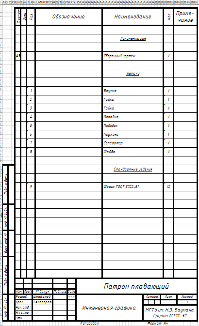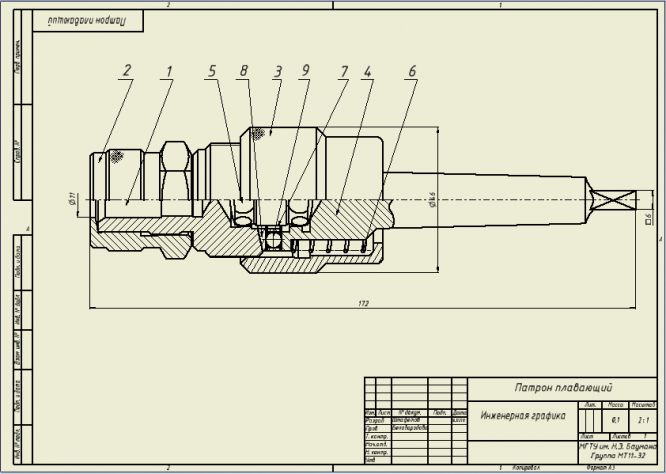 Для студентов МГТУ им. Н.Э.Баумана по предмету Инженерная графикаПлавающий патронПлавающий патрон