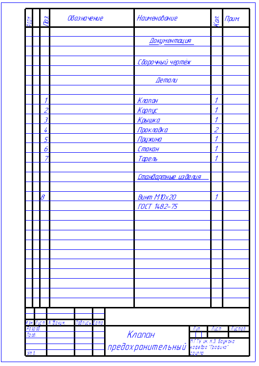 Для студентов МГТУ им. Н.Э.Баумана по предмету Инженерная графикаКлапан предохранительныйКлапан предохранительный