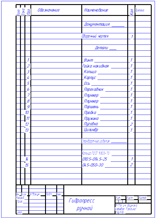 Для студентов МГТУ им. Н.Э.Баумана по предмету Инженерная графикаГидропресс ручнойГидропресс ручной