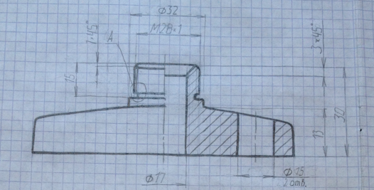 • Эскиз и чертеж крышки сальника Д-45. Каждый вид на отдельном фото