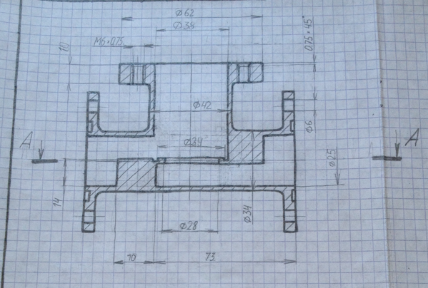 • Эскиз и чертеж корпуса Д-46. Каждый вид на отдельном фото