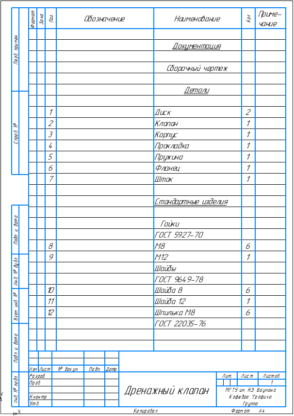 Для студентов МГТУ им. Н.Э.Баумана по предмету Инженерная графикаДренажный клапанДренажный клапан