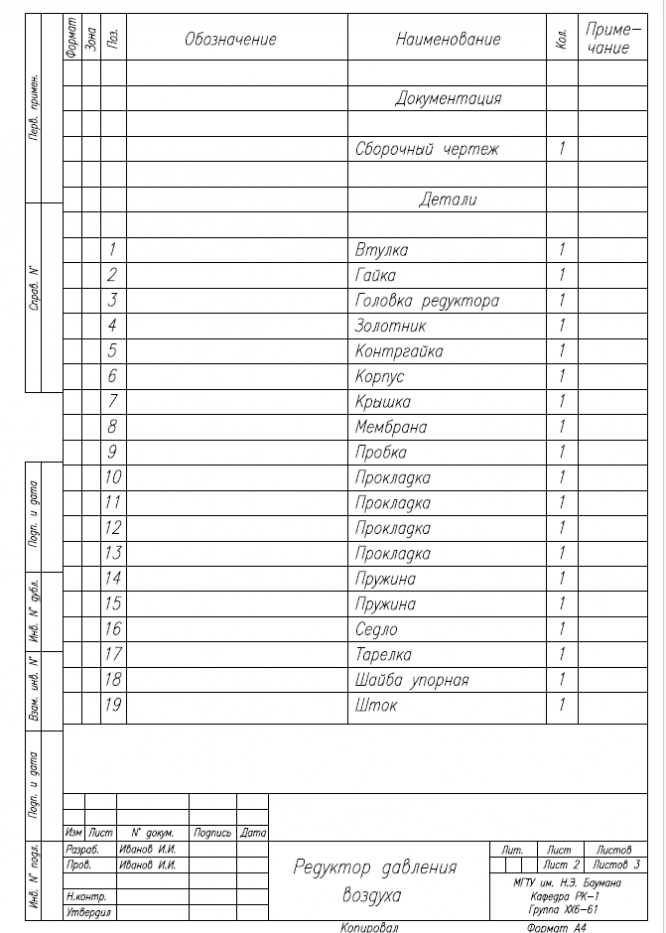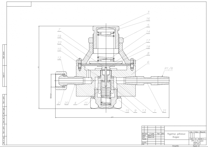 Для студентов МГТУ им. Н.Э.Баумана по предмету Инженерная графикаРедуктор давления воздухаРедуктор давления воздуха