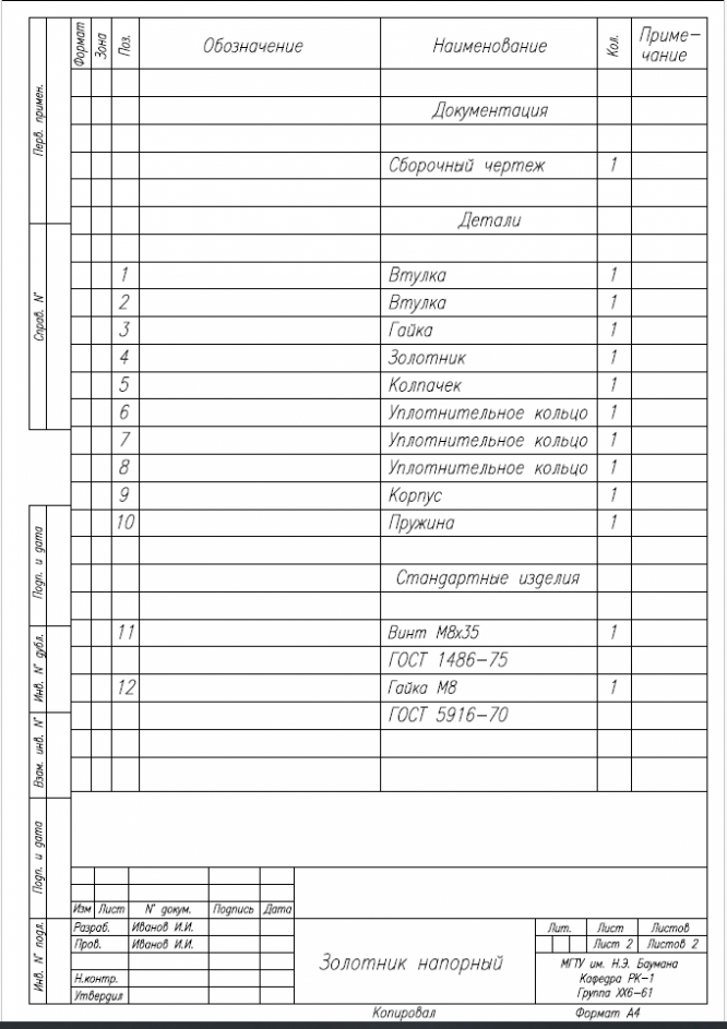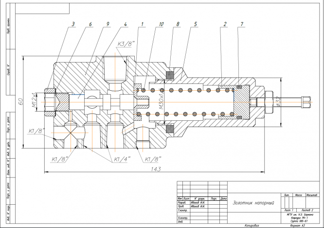 Для студентов МГТУ им. Н.Э.Баумана по предмету Инженерная графикаЗолотник напорныйЗолотник напорный