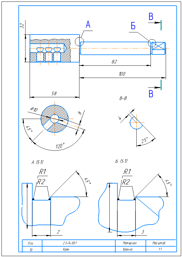 ДЗ 23: Деталировка 23-14 - Кран распределительный вариант 14