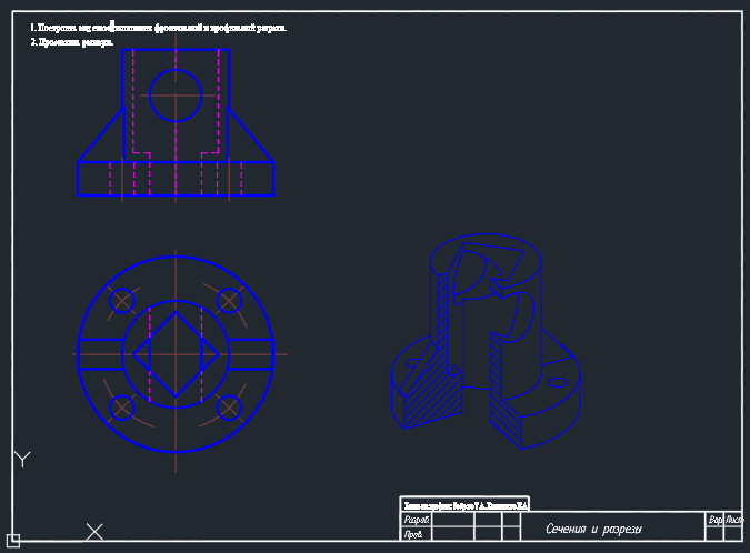 • ИГР-6 - 1. Построить вид слева, выполнить фронтальный и профильный разрезы.