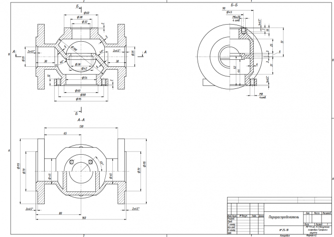 ДЗ 25: Деталировка 25-10 (Парораспределитель) вариант 10
