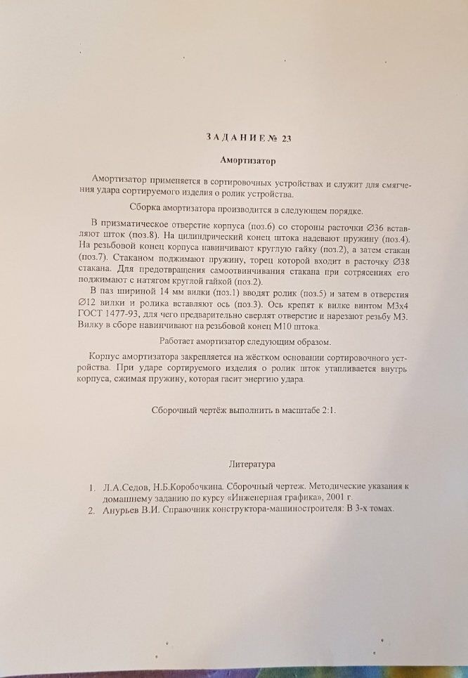 Для студентов МГТУ им. Н.Э.Баумана по предмету Инженерная графикаСборка 23 - АмортизаторСборка 23 - Амортизатор