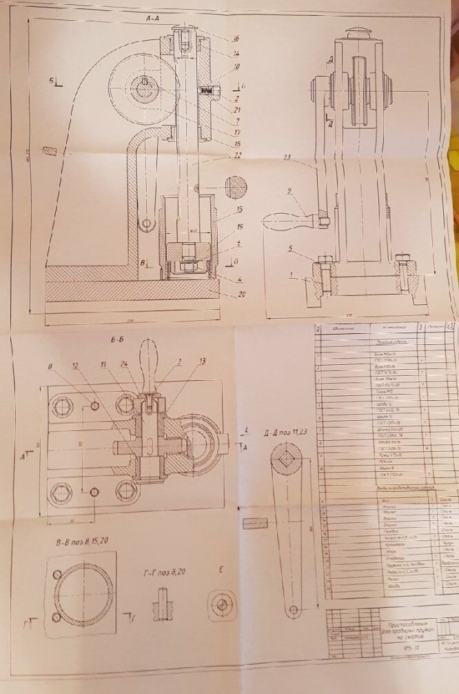 Для студентов МГТУ им. Н.Э.Баумана по предмету Инженерная графикаДеталировка №5-10 Приспособление для проверки пружин на сжатиеДеталировка №5-10 Приспособление для проверки пружин на сжатие