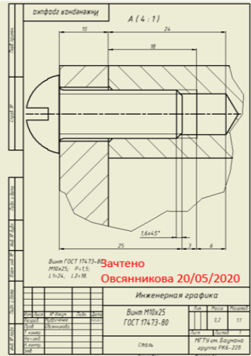 Для студентов МГТУ им. Н.Э.Баумана по предмету Инженерная графикаВариант 15 - Соединение винтомВариант 15 - Соединение винтом