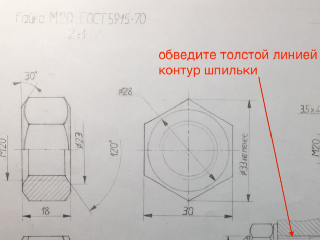 Для студентов МГТУ им. Н.Э.Баумана по предмету Инженерная графикаВариант 23 - Шпилечное соединениеВариант 23 - Шпилечное соединение