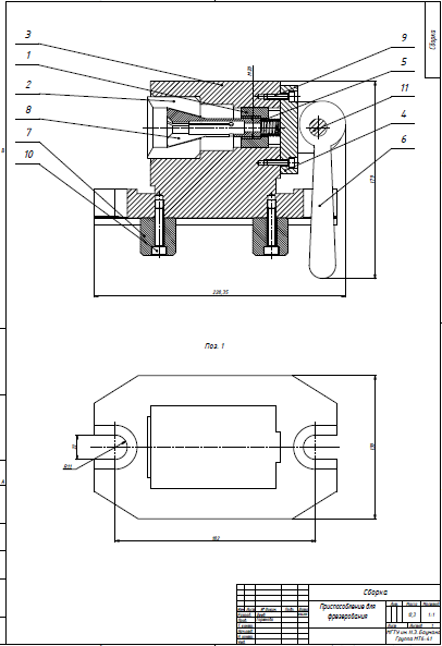 Для студентов МГТУ им. Н.Э.Баумана по предмету Инженерная графикаСборка 2 - Приспособление для фрезерованияСборка 2 - Приспособление для фрезерования