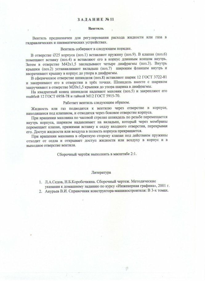 Для студентов МГТУ им. Н.Э.Баумана по предмету Инженерная графикаСборка 11 - ВентильСборка 11 - Вентиль