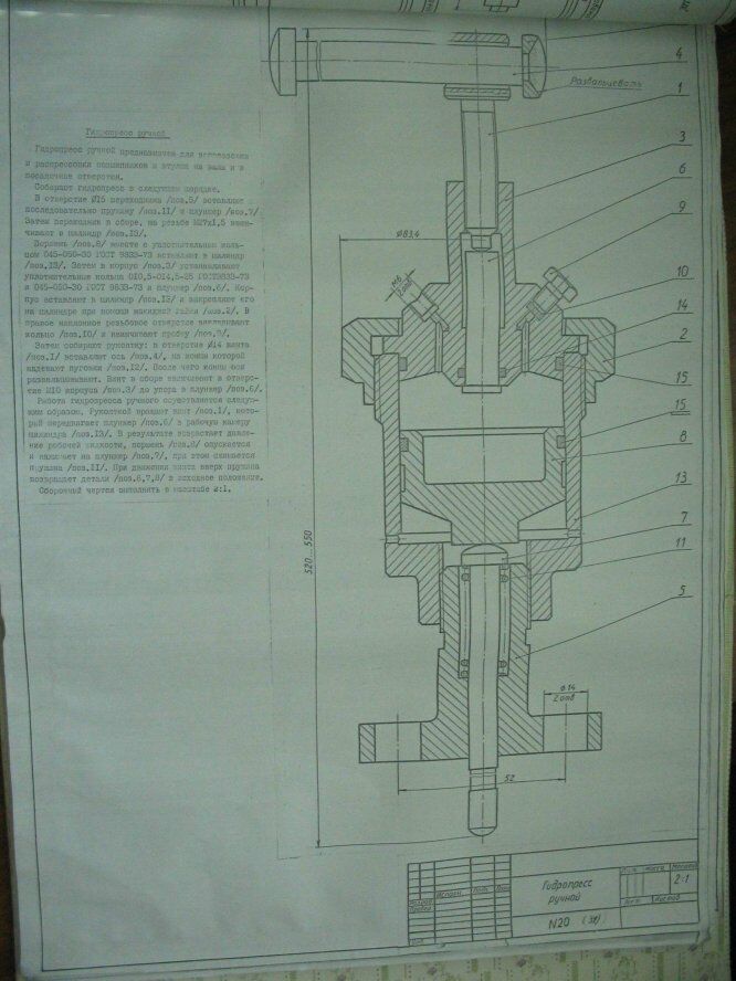 Для студентов МГТУ им. Н.Э.Баумана по предмету Инженерная графикаГидропресс ручнойГидропресс ручной