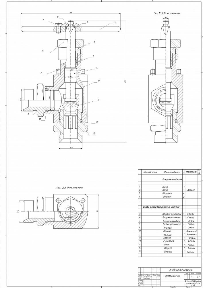 Для студентов МГТУ им. Н.Э.Баумана по предмету Инженерная графикаКран угловойКран угловой