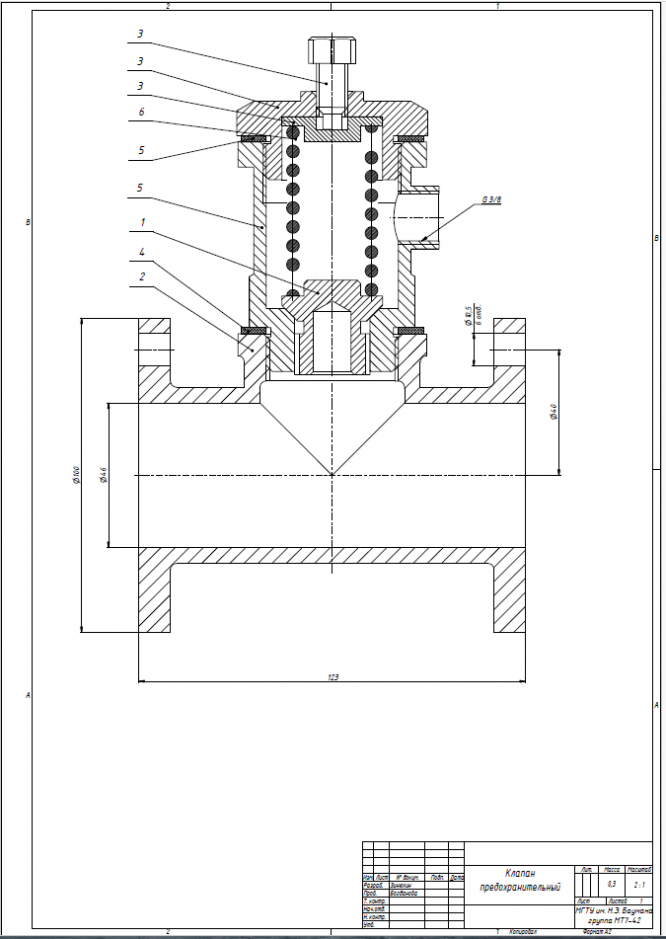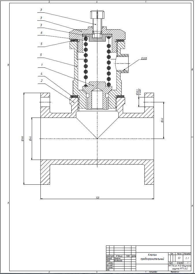 Для студентов МГТУ им. Н.Э.Баумана по предмету Инженерная графикаКлапан предохранительныйКлапан предохранительный