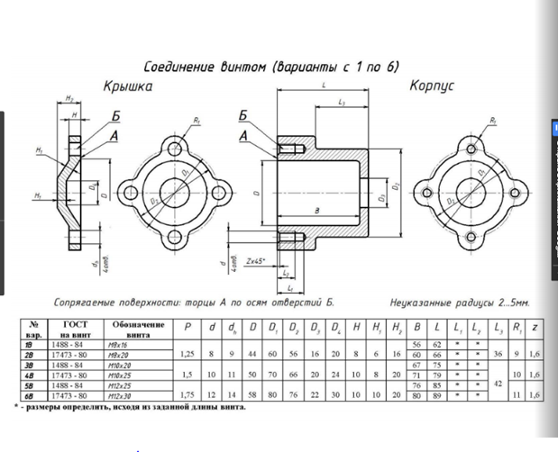 Для студентов МГТУ им. Н.Э.Баумана по предмету Инженерная графикаВариант 1 - Соединение винтомВариант 1 - Соединение винтом