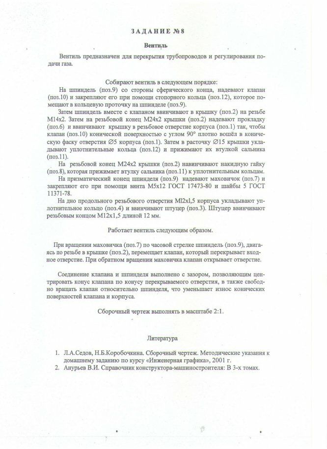 Для студентов МГТУ им. Н.Э.Баумана по предмету Инженерная графикаВариант №8 - ВентильВариант №8 - Вентиль