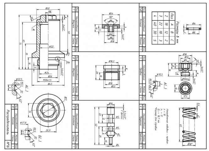 Для студентов МГТУ им. Н.Э.Баумана по предмету Инженерная графика16 вариант Распределитель16 вариант Распределитель