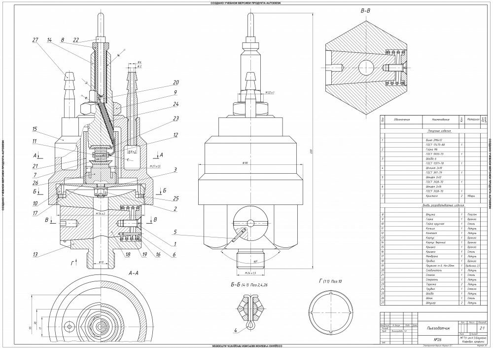 Для студентов МГТУ им. Н.Э.Баумана по предмету Инженерная графика№26- Пьезодатчик№26- Пьезодатчик