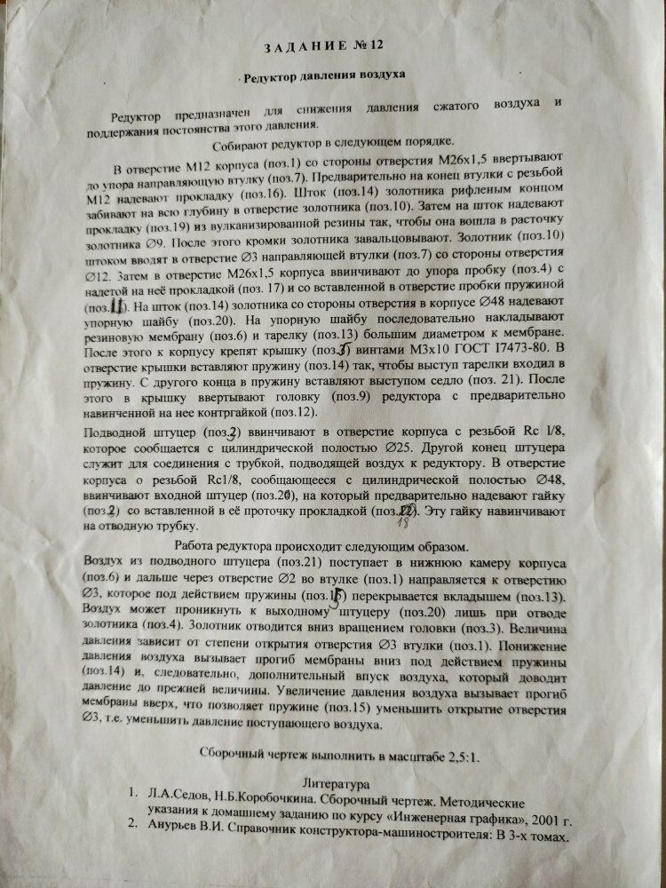 ДЗ: Сборка 12, "Редуктор давления воздуха" вариант 12