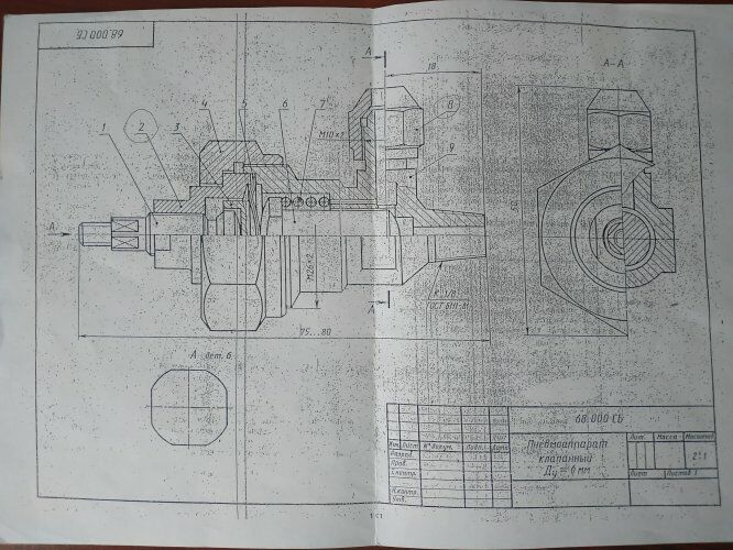 Для студентов МГТУ им. Н.Э.Баумана по предмету Инженерная графикаПневмоаппарат клапанный Ду=6ммПневмоаппарат клапанный Ду=6мм