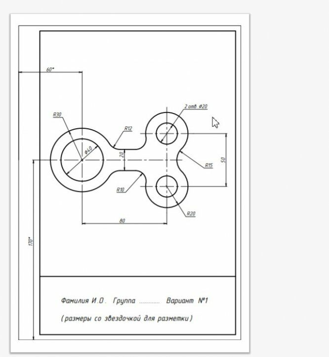 В файле находятся все 7 работ на чистовике за 1 семестр по курсу инженерной графики. Плоский контур и 6 задач. Условие ниже