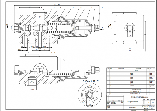 Для студентов МГТУ им. Н.Э.Баумана по предмету Инженерная графикаСборка 16 - РаспределительСборка 16 - Распределитель
