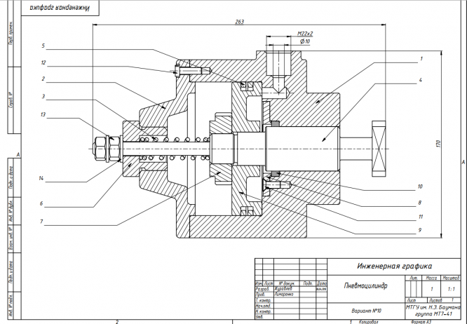 Для студентов МГТУ им. Н.Э.Баумана по предмету Инженерная графикаПневмоцилиндр 10Пневмоцилиндр 10