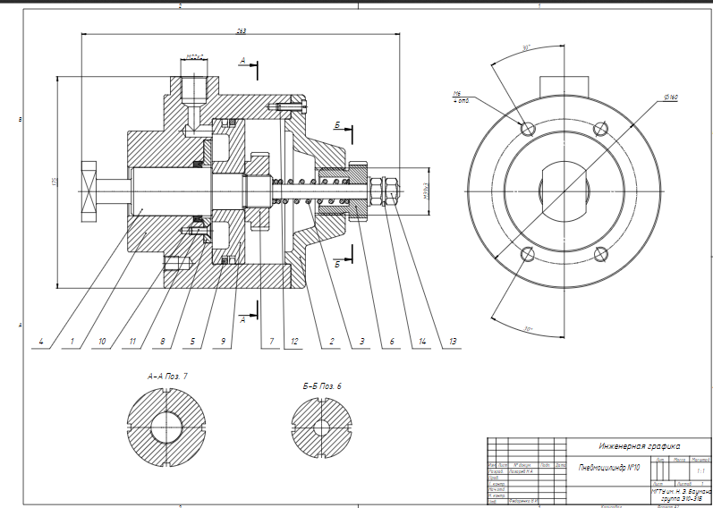 Для студентов МГТУ им. Н.Э.Баумана по предмету Инженерная графикаПневмоцилиндрПневмоцилиндр