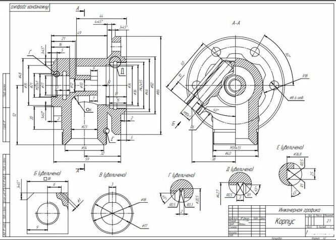 Для студентов МГТУ им. Н.Э.Баумана по предмету Инженерная графикаКорпус и сборочный чертежКорпус и сборочный чертеж