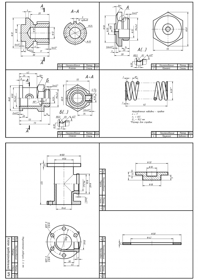 ДЗ: Вариант №6 - Клапан предохранительный (деталировка) вариант 6