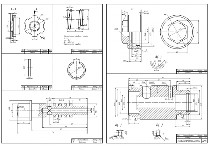 Для студентов МГТУ им. Н.Э.Баумана по предмету Инженерная графикаВариант №15 - Пневмораспределитель (деталировка)Вариант №15 - Пневмораспределитель (деталировка)