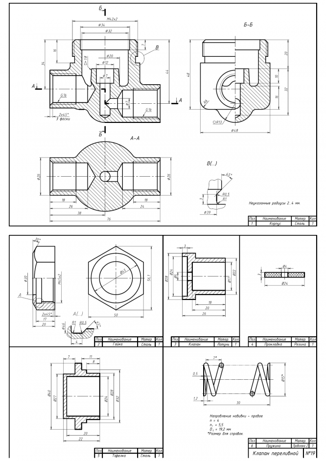 ДЗ: Вариант №19 - Клапан переливной (деталировка) вариант 19