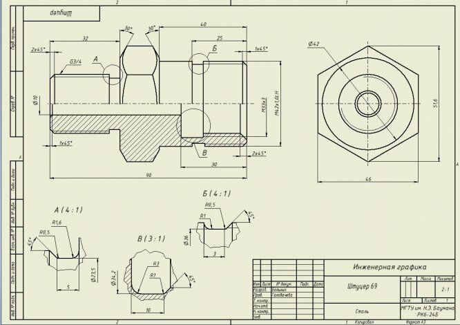 Для студентов МГТУ им. Н.Э.Баумана по предмету Инженерная графикаШтуцер 69Штуцер 69 2021-09-19СтудИзба