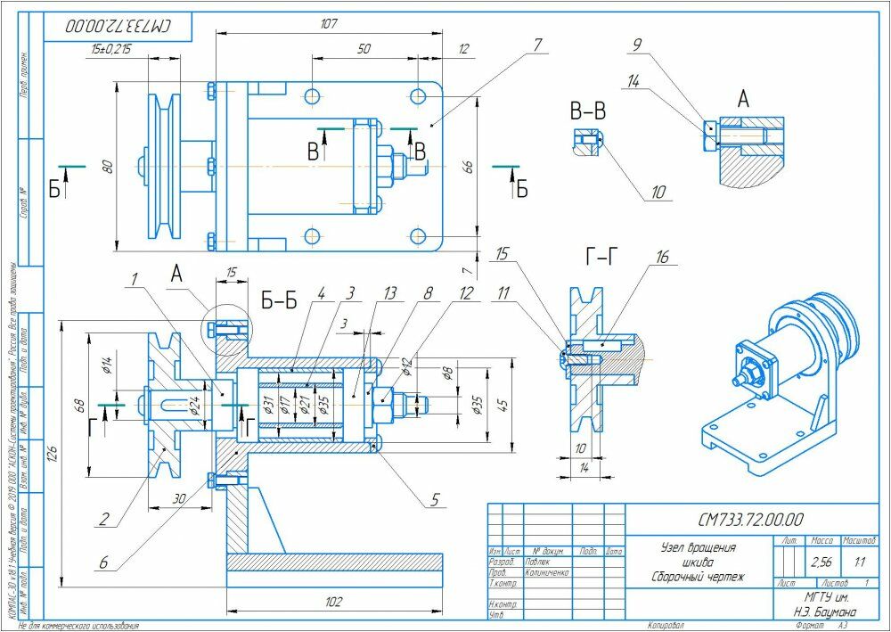 Для студентов МГТУ им. Н.Э.Баумана по предмету Инженерная графикаУзел вращения шкива дз№3 72 вариант 2020гУзел вращения шкива дз№3 72 вариант 2020г