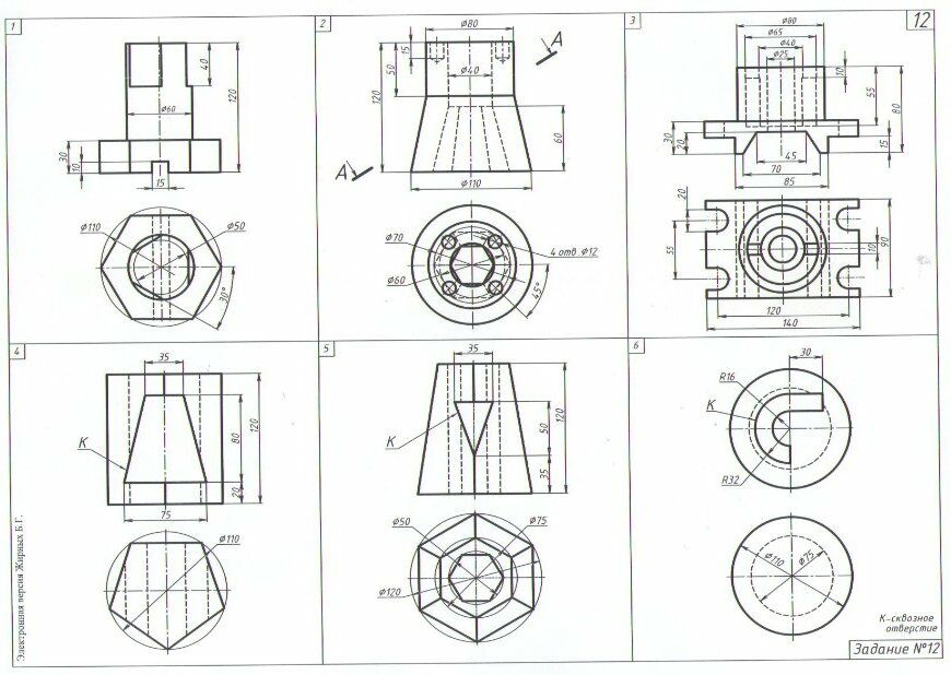 В файле 6 чертежей-чистовиков заданий (1,2,3,4,5,6) для 12 вариант всех факультетов. Аккуратно начерчены. Условие ниже