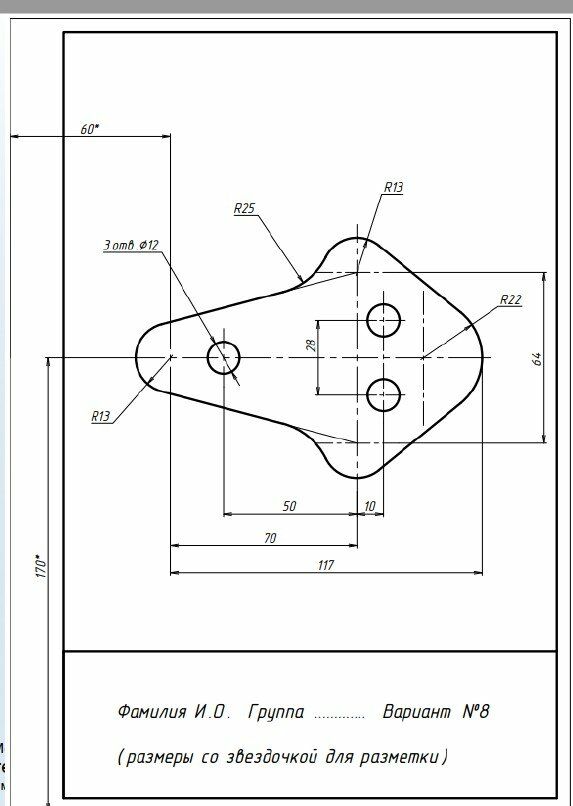 В файле плоский контур + 6 задач по курсу инженерная графика для 8 варианта всех факультетов кроме ИУ РК-6 МТ-9 . К задач 2-6 ( из списка 6 задач ) прикреплены черновики с отмеченными преподавателем точками. Условие ниже