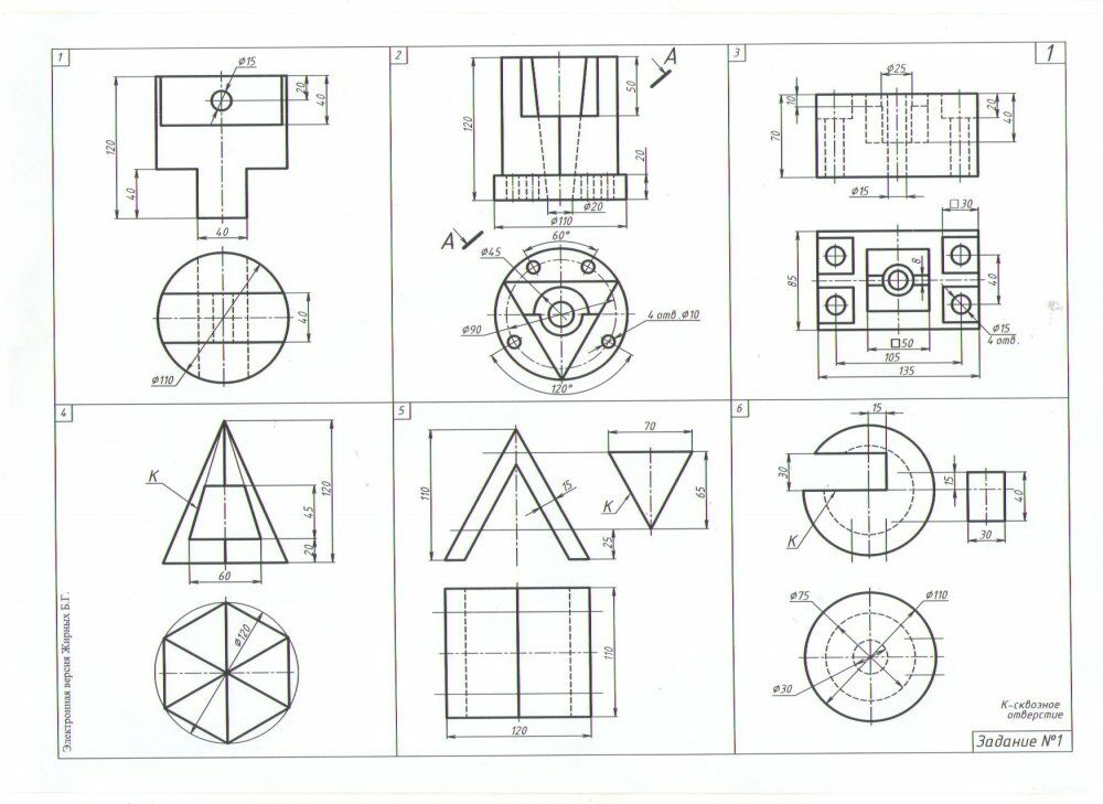 Домашнее задание № 2 и 3 "Построение изображений" (6 задач) по курсу "Инженерная графика"