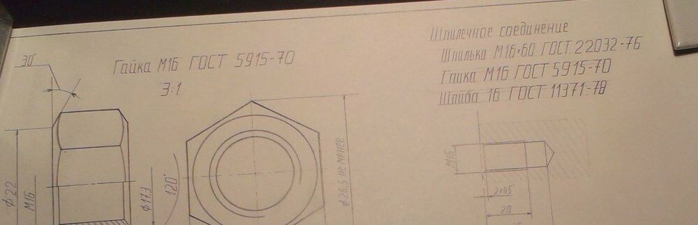 Для студентов МГТУ им. Н.Э.Баумана по предмету Инженерная графикаШпилечное соединениеШпилечное соединение