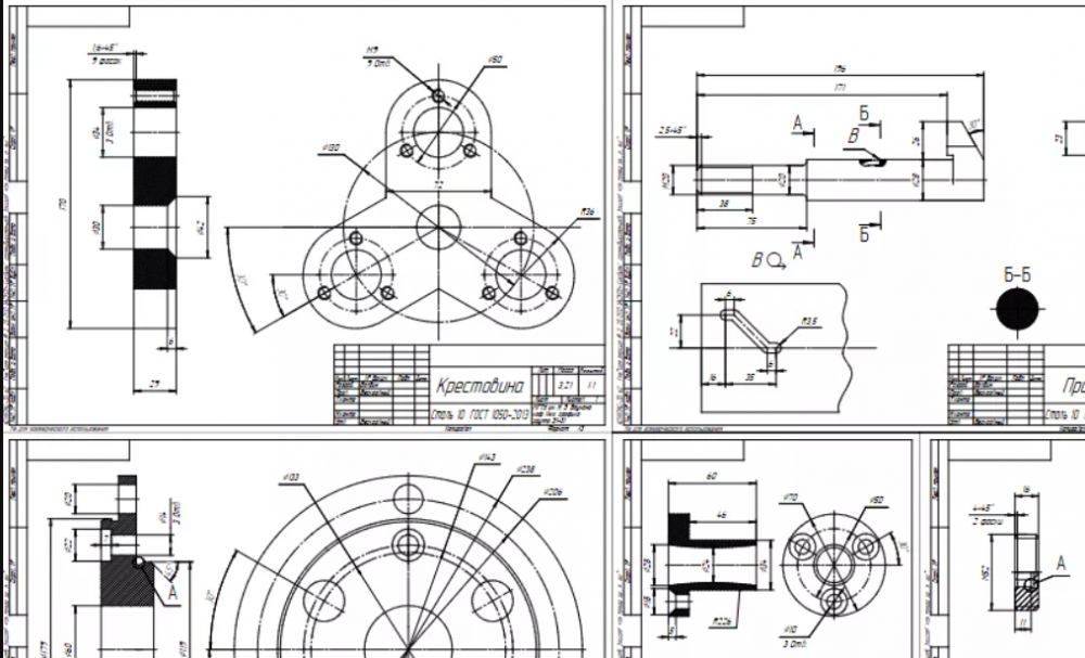 Файл содержит чертежи пяти деталей из сборки "Головка пневматического патрона":