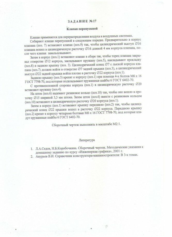 Для студентов МГТУ им. Н.Э.Баумана по предмету Инженерная графика2022г - Задание 17 - Клапан перепускной2022г - Задание 17 - Клапан перепускной