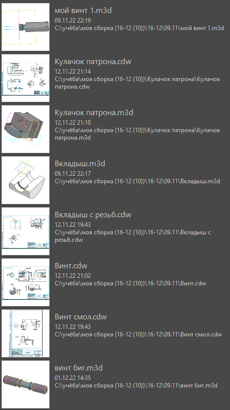 Модели и чертежи деталей сборки (винт1, винт2, вкладыш, кулачок патрона) берите - не пожалеете