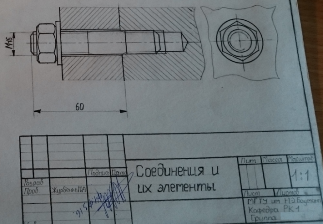 Для студентов МГТУ им. Н.Э.Баумана по предмету Инженерная графикаШпилечное соединениеШпилечное соединение