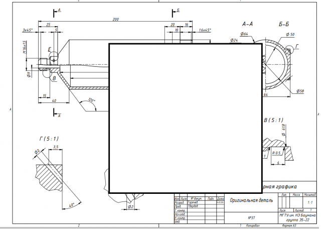 Для студентов МГТУ им. Н.Э.Баумана по предмету Инженерная графикаДеталь И-37Деталь И-37