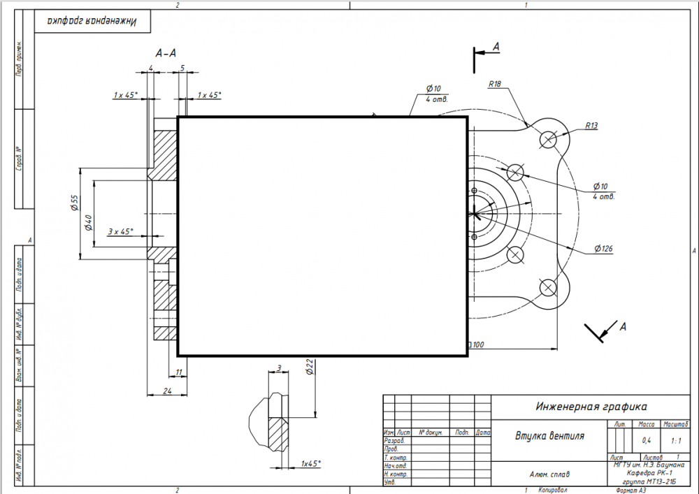 Для студентов МГТУ им. Н.Э.Баумана по предмету Инженерная графикаВтулка вентиляВтулка вентиля