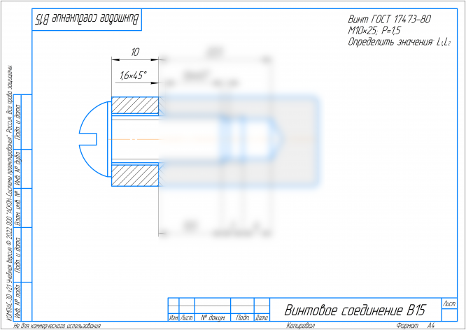 ДЗ№3 по инженерной графике на тему \"Винтовое соединение\" 15 варианта (Рябов).