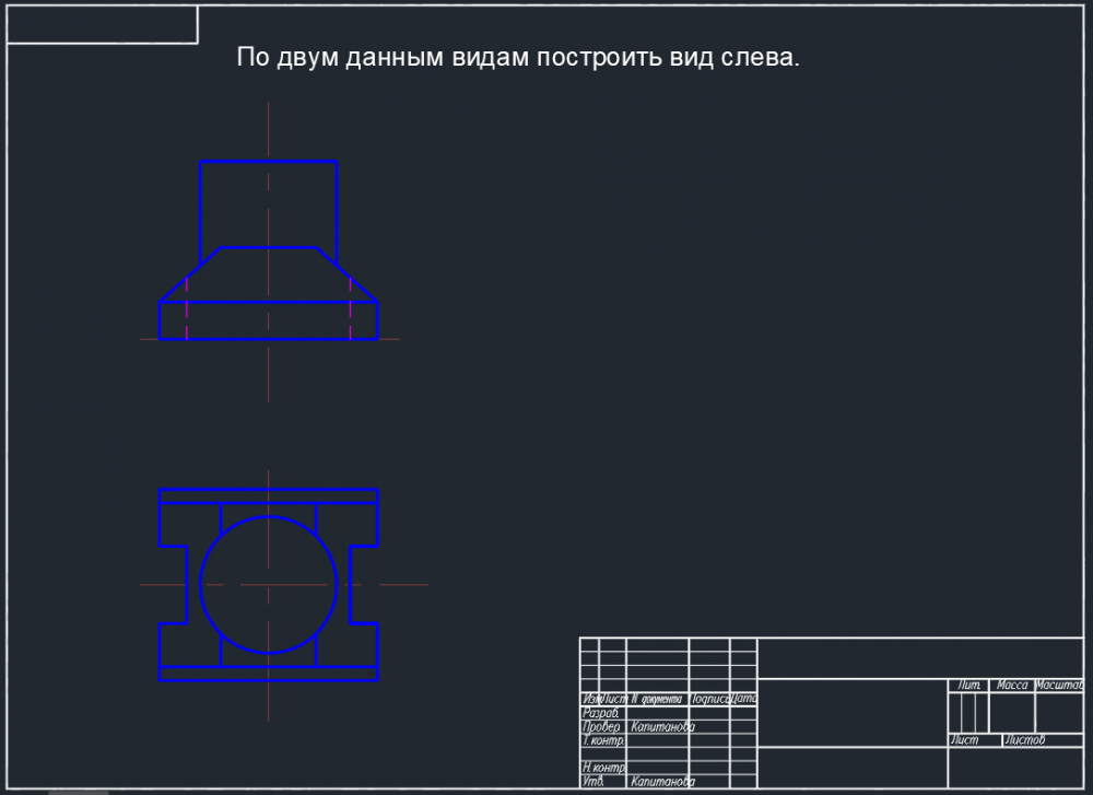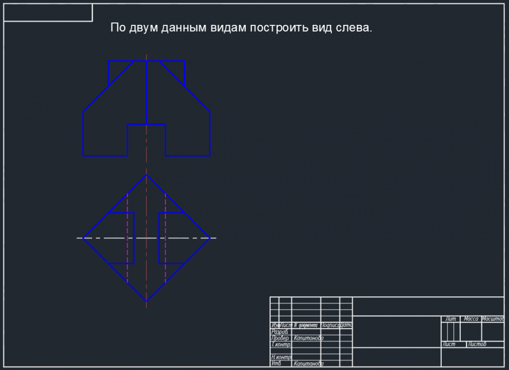 2. Проставить размеры. - ИГР-6 - 1. Построить вид слева, выполнить фронтальный и профильный разрезы.