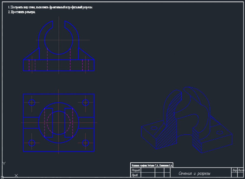 - ИГР-5- 1. Построить вид слева, выполнить фронтальный и профильный разрезы.