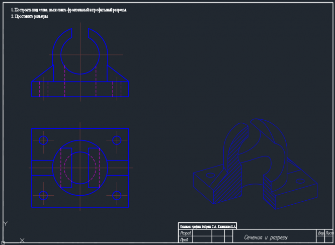 • ИГР-6 - 1. Построить вид слева, выполнить фронтальный и профильный разрезы.
